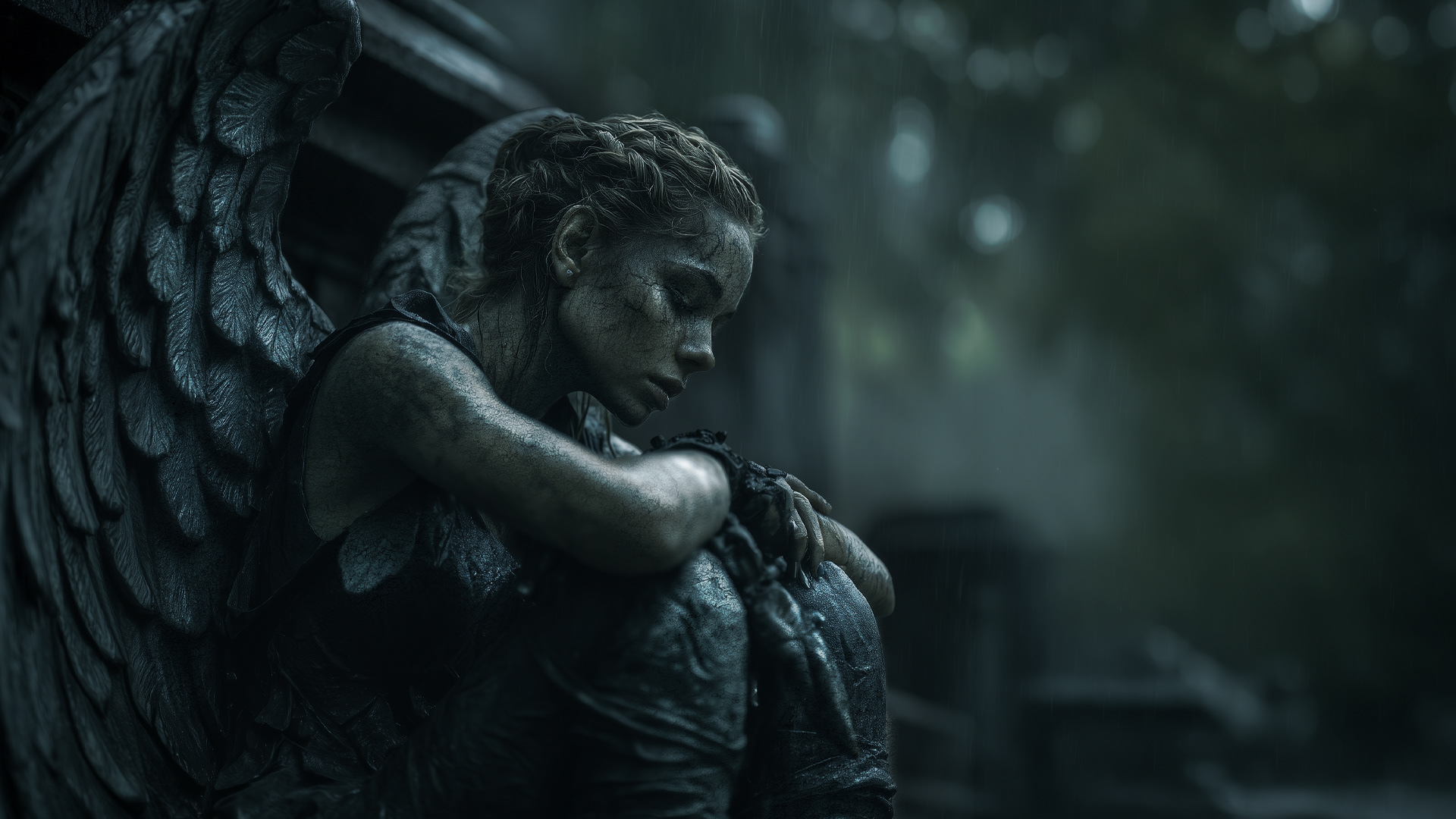 The image here belongs to the act of her setback. Not defeat. The breath between blows, where she gathers herself in the rain and listens for her own pulse.